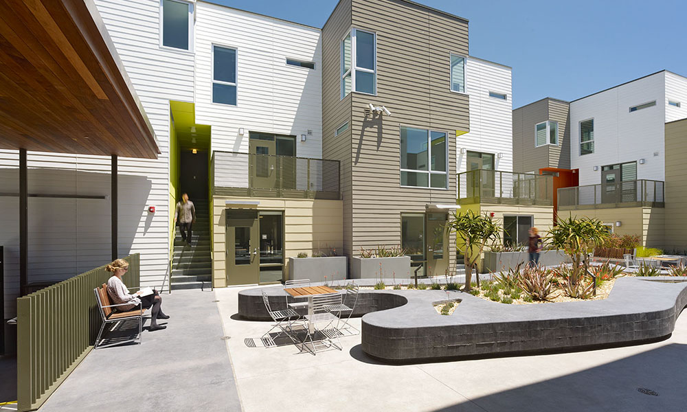 New construction of a 32-unit affordable housing development in the Fillmore District of San Francisco. Amenities include a courtyard and landscaping on the top of the podium.